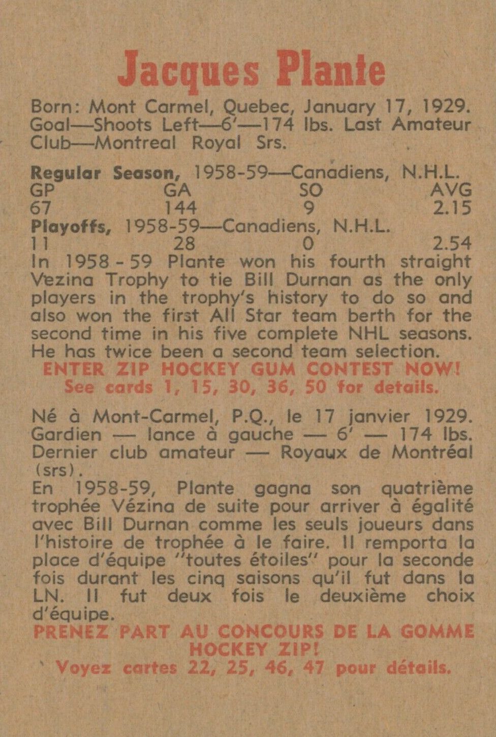 Carte de collection du Club le Canadien de Montréal dans les années 1959-1960